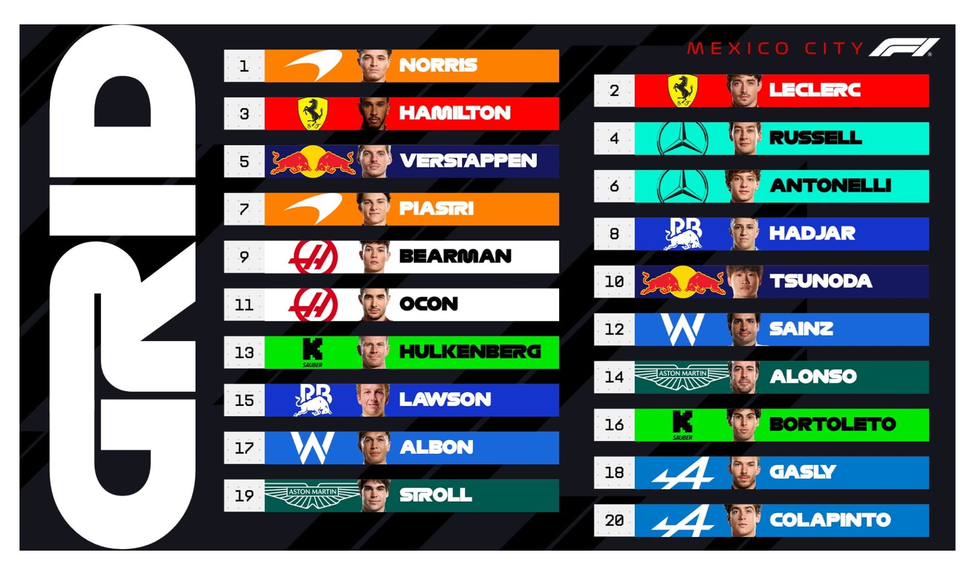 Así quedó la grilla de largada del Gran Premio de México (Foto: @F1)