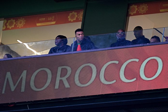 Kylian Mbappé observando el partido entre Marruecos y Mali (Photo by Gabriel BOUYS / AFP)