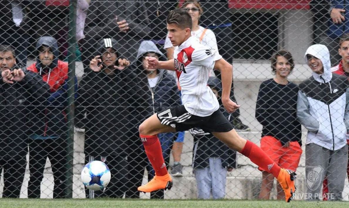 Giuliano Simeone en un encuentro de las inferiores de River Plate