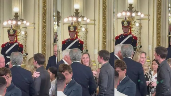 Fede Mayol precisó que “estaban todos los funcionarios, todo el gabinete e invitados, pero se cruzaron públicamente delante de las cámaras Karina Milei y Santiago Caputo, y se dieron este abrazo que estamos viendo”. Sin embargo, el periodista destacó: “Que no es abrazo, bastante frío, especialmente por parte de Santiago Caputo”.