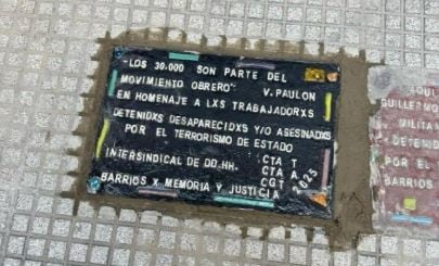 El Gobierno denunció a dirigentes por modificar una placa en homenaje a desaparecidos