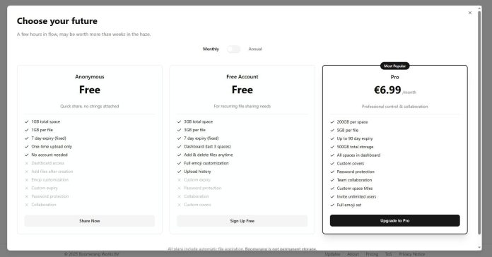 Los planes posibles de Boomerang, el servicio de transferencia de archivos creado por uno de los fundadores de WeTransfer