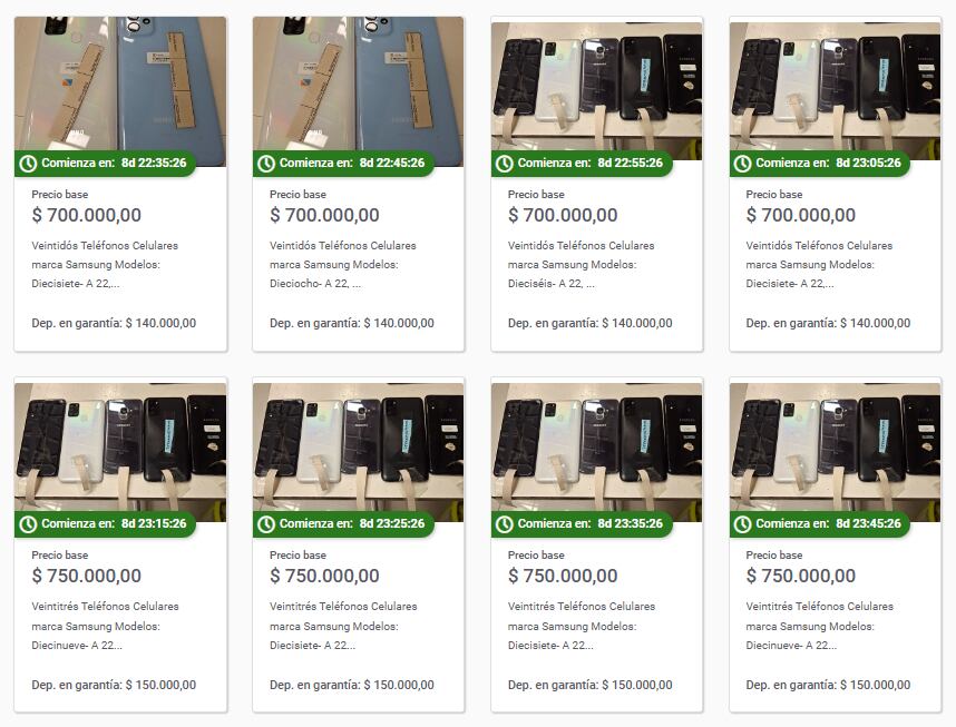La subasta n°3825 de la entidad bancaria tendrá lugar el 27 de marzo desde las 11 hasta las 12.50. La exhibición presencial se llevará a cabo en la avenida Cabildo 3061, Capital Federal. Según se informó, los números de IMEI y su respectivo código de liberación se entregarán al momento del retiro en planilla adjunta.